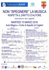 Non spegnere la Musica, rispetta il Diritto d’Autore – Convegno 15 marzo 2016, Aula Magna Corte d’Appello di Cagliari