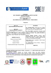 L’evento è organizzato grazie alla collaborazione della SIAE e grazie al patrocinio del MiBACT, del Ministero della Giustizia, della FPM e della FEM, del Comune di Pistoia, della Regione Toscana e del Comando Regionale Toscana della Guardia di Finanza. Inoltre, l’Ordine degli Avvocati di Pistoia ha riconosciuto 2 crediti formativi per gli Avvocati che vorranno partecipare all’evento.
